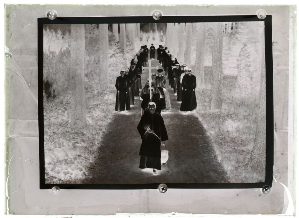 Doos met 24 glasnegatieven van de Tweebaksmarkt en Provinciehuis en diverse gezichten te Leeuwarden en van een Rooms-Katholieke kerkgezelschap