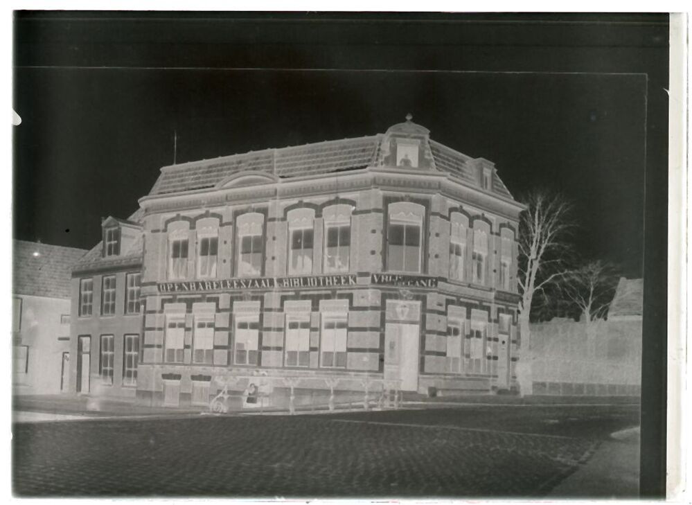 Doos met 24 glasnegatieven van de Tweebaksmarkt en Provinciehuis en diverse gezichten te Leeuwarden en van een Rooms-Katholieke kerkgezelschap