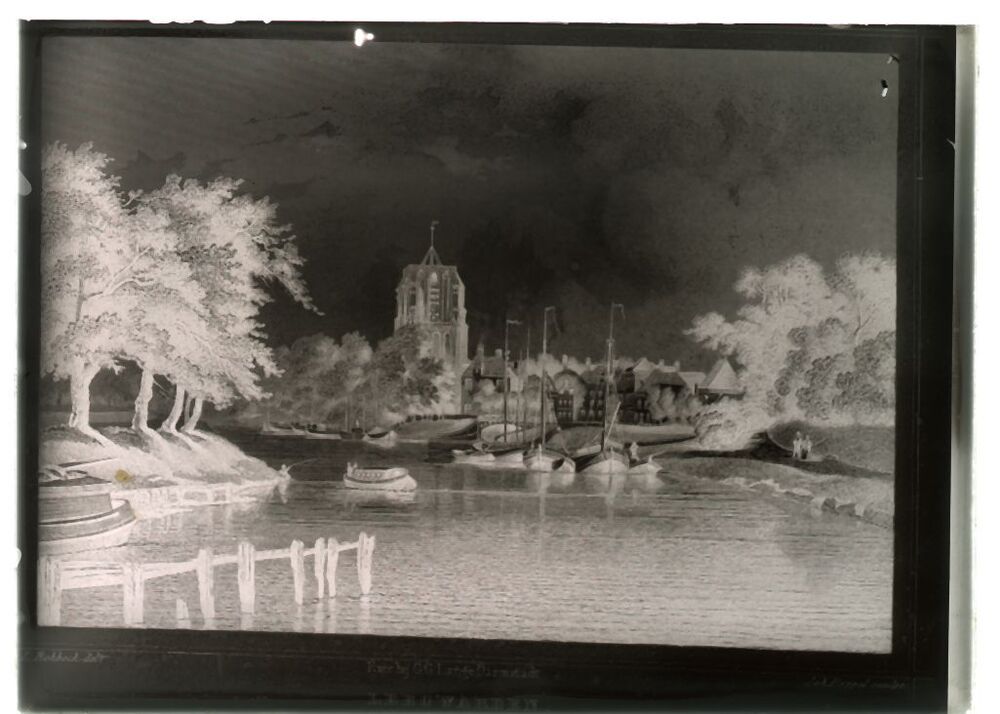 Doos met 24 glasnegatieven van de Tweebaksmarkt en Provinciehuis en diverse gezichten te Leeuwarden en van een Rooms-Katholieke kerkgezelschap