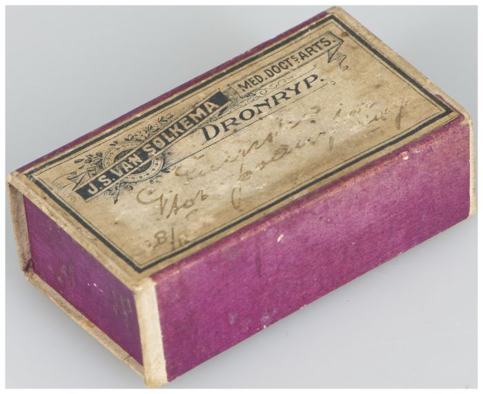 Rechthoekig medicijndoosje van arts J.S. van Solkema te Dronrijp