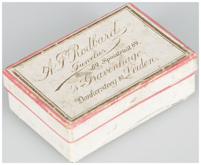 Kartonnen doosje van A.F. Rodbard, juwelier te Leiden