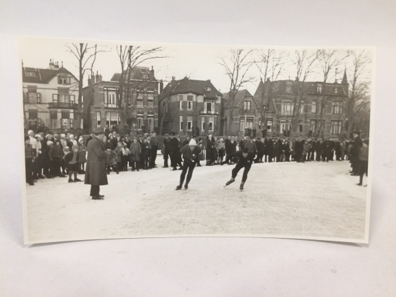 Zwart wit foto, een van van 38 zwart-wit foto's van de Elfstedentocht verreden op 16 December 1933
