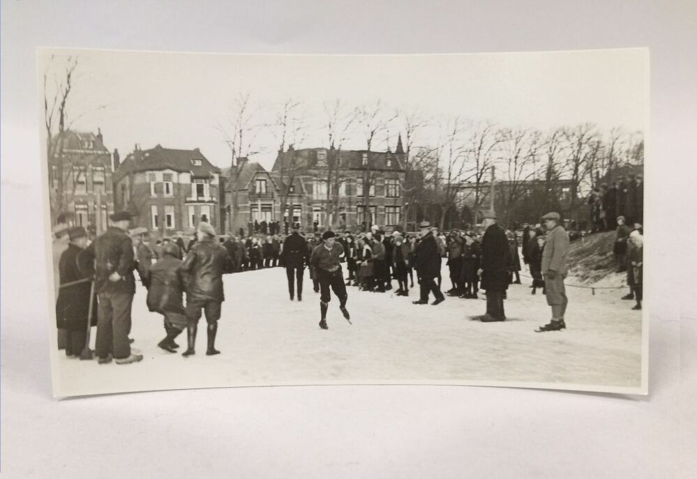 Zwart wit foto, een van van 38 zwart-wit foto's van de Elfstedentocht verreden op 16 December 1933