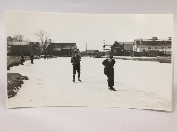 Zwart wit foto, een van van 38 zwart-wit foto's van de Elfstedentocht verreden op 16 December 1933