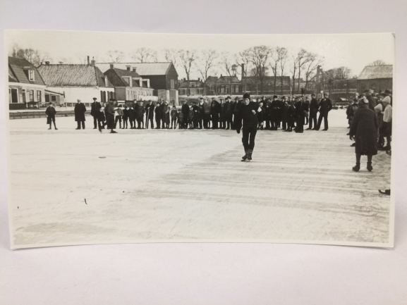 Zwart wit foto, een van van 38 zwart-wit foto's van de Elfstedentocht verreden op 16 December 1933