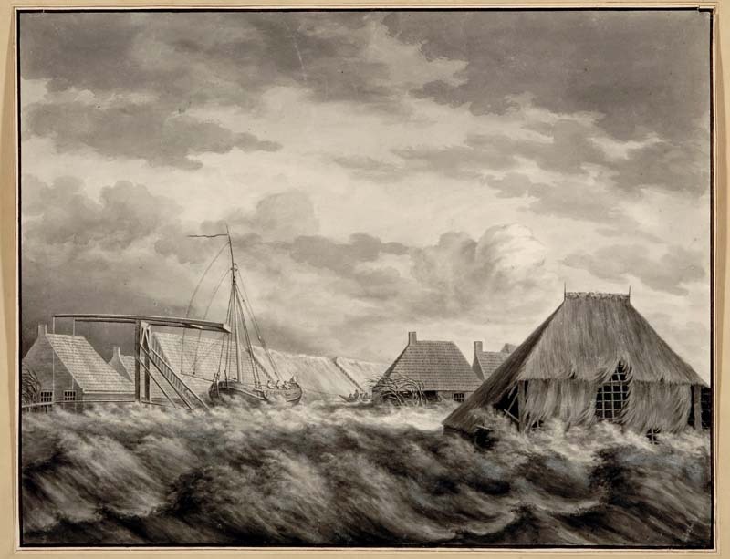 Watervloed 1825 / het gehucht Vierhuizen in Schoterland