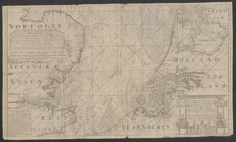 Nieuwe en seer ceurieuse gelyk graadige paskaart van 't zuyder deel der Noord-Zee