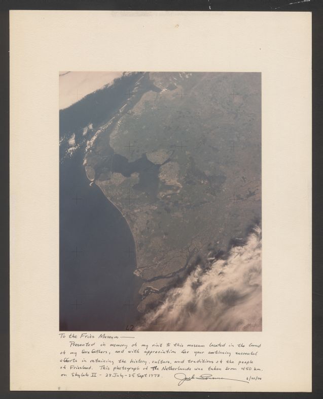 Nederland gezien vanuit de ruimte door Skylab II, met bedankbriefje van astronaut Jack Lousma