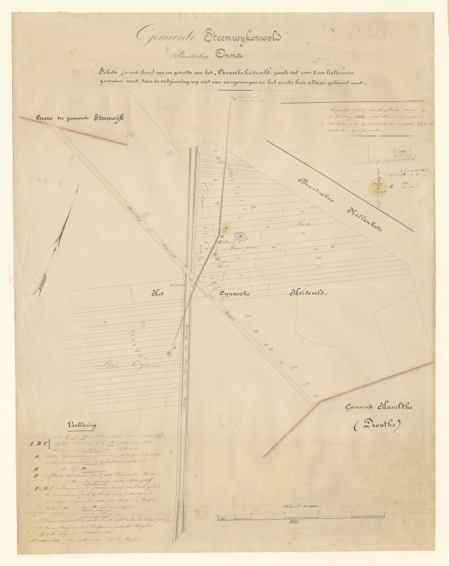 Schets van een gedeelte van het "Onnasche heideveld", zooals dat voor ± een halve eeuw gevonden werd / Gemeente Steenwijkerwold, buurtschap Onna