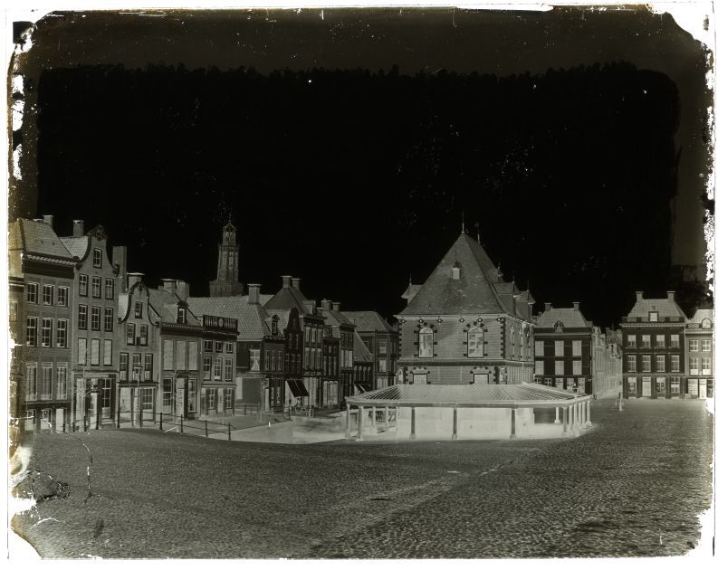 Glasnegatief met zicht op de Waag te Leeuwarden ca. 1870.