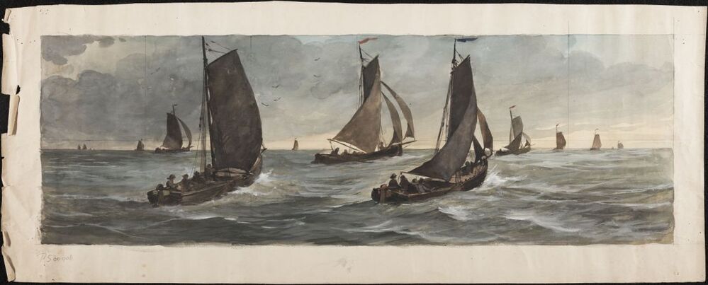 Ontwerptekening voor een tegeltableau met tafereeldecor