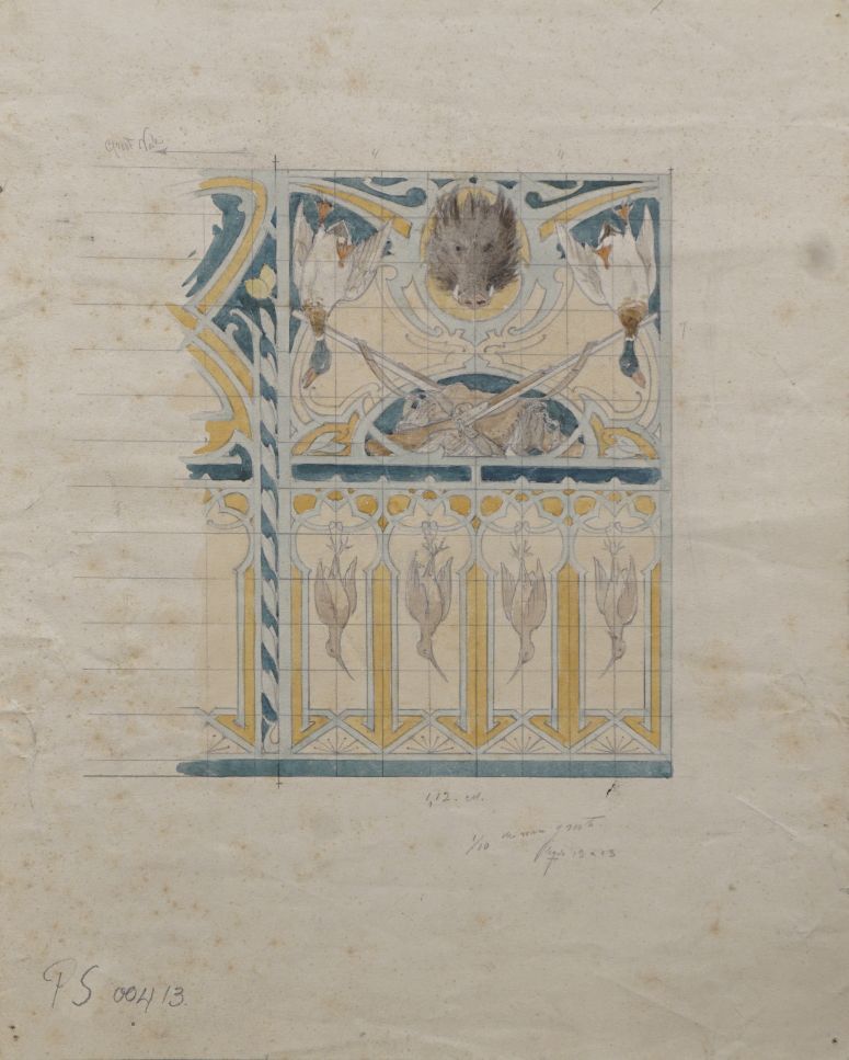 1 ontwerptekening voor een tegeltableau met dierendecor