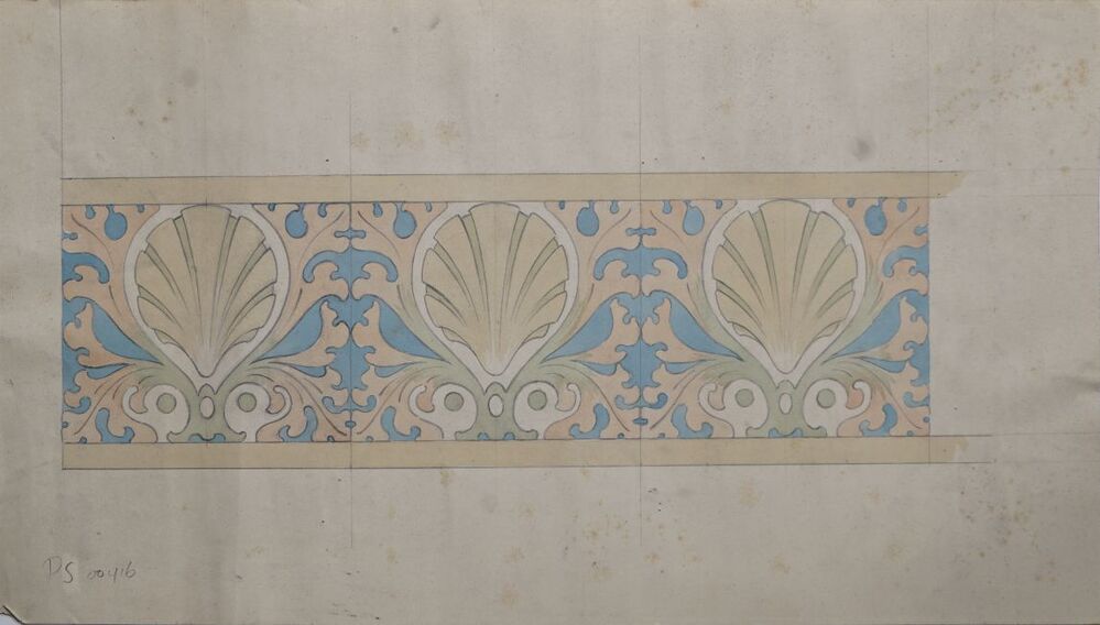 1 ontwerptekening voor een tegeltableau met ornamentdecor