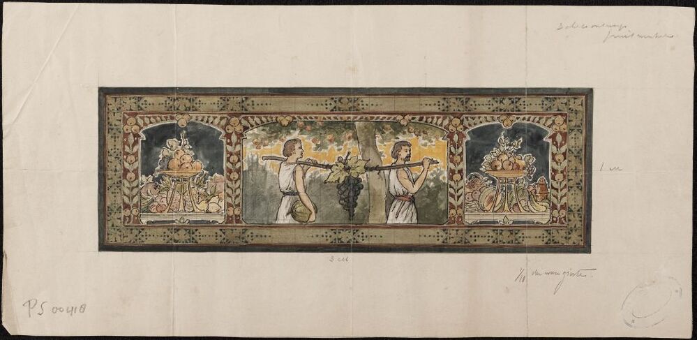 1 ontwerptekening voor een tegeltableau met vruchtendecor