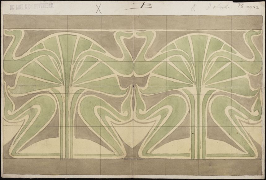 1 ontwerptekening voor een tegeltableau met ornamentdecor