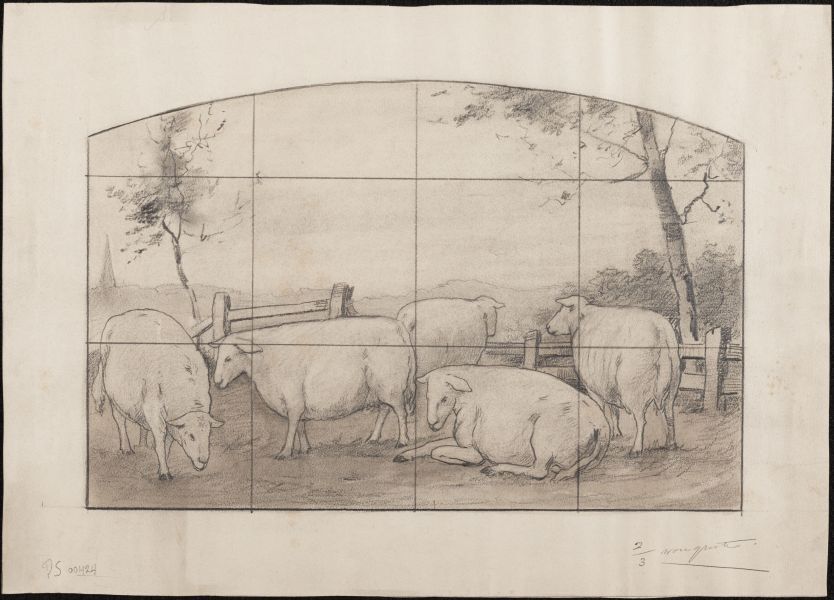 1 ontwerptekening voor een tegeltableau met dierendecor