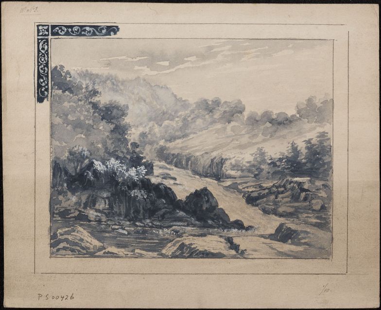 1 ontwerptekening voor een tegeltableau met tafereeldecor