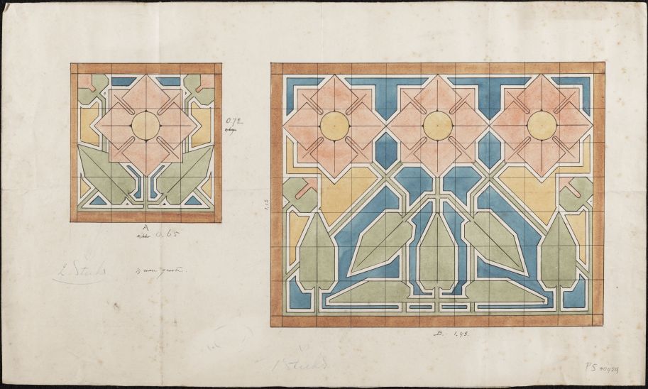 1 ontwerptekening voor een tegeltableau met ornamentdecor