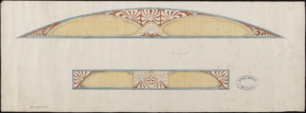 1 ontwerptekening voor een tegeltableau met ornamentdecor