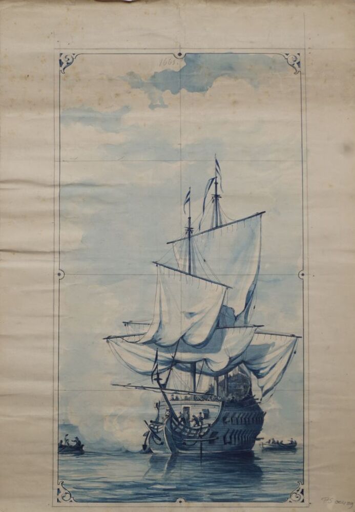 1 ontwerptekening voor een tegeltableau met tafereeldecor