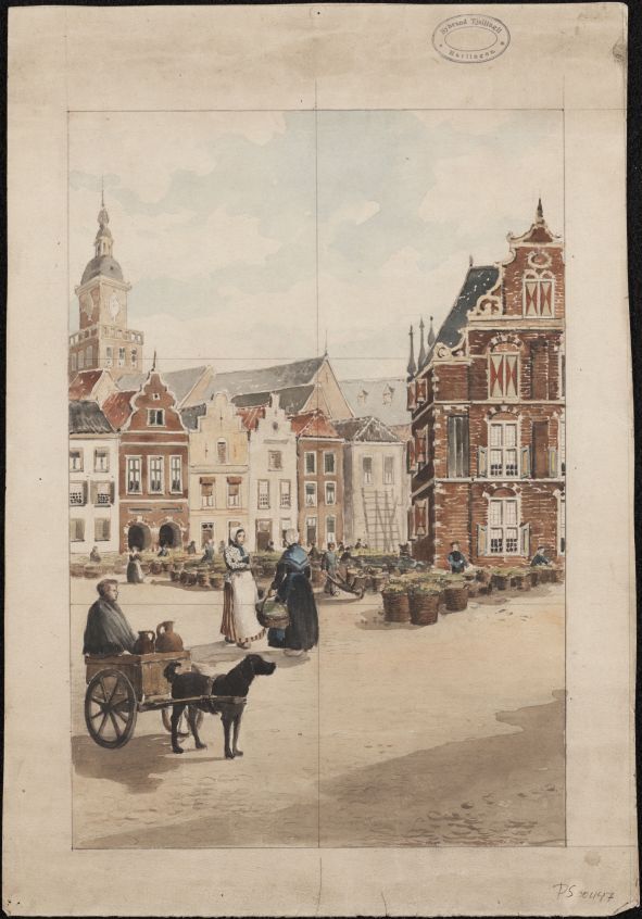 1 ontwerptekening voor een tegeltableau met tafereeldecor