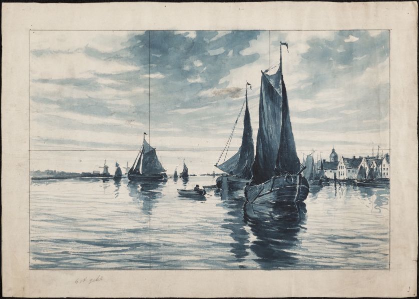 1 ontwerptekening voor een tegeltableau met tafereeldecor