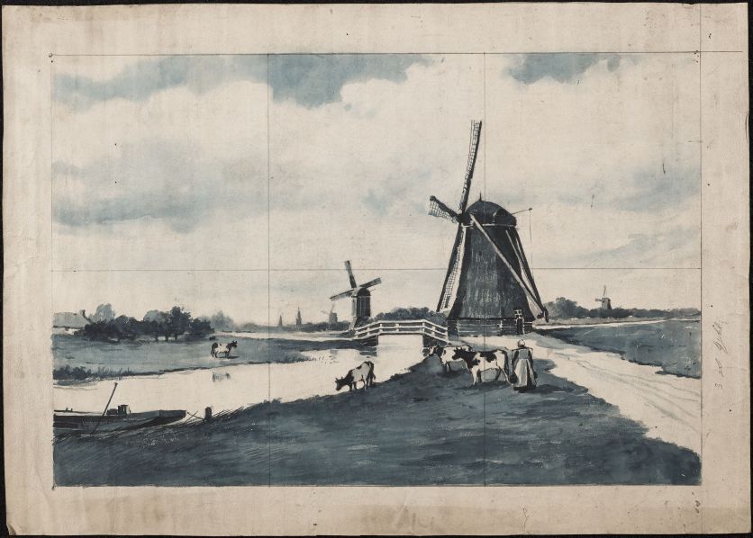 1 ontwerptekening voor een tegeltableau met tafereeldecor