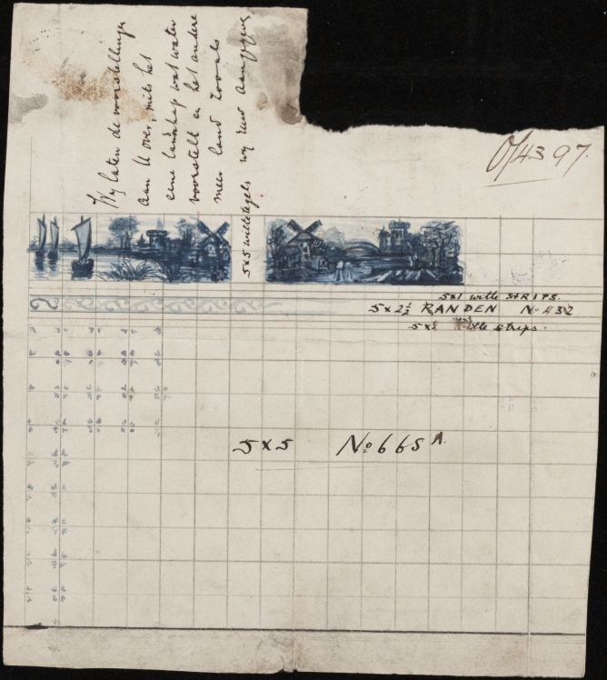 1 ontwerptekening voor losse tegel met ornamentdecor