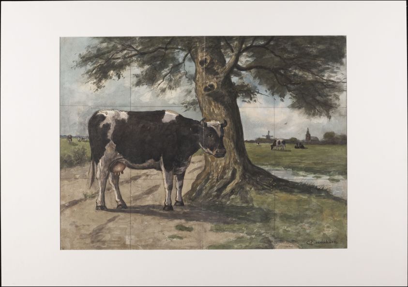 1 ontwerptekening voor een tegeltableau met dierendecor