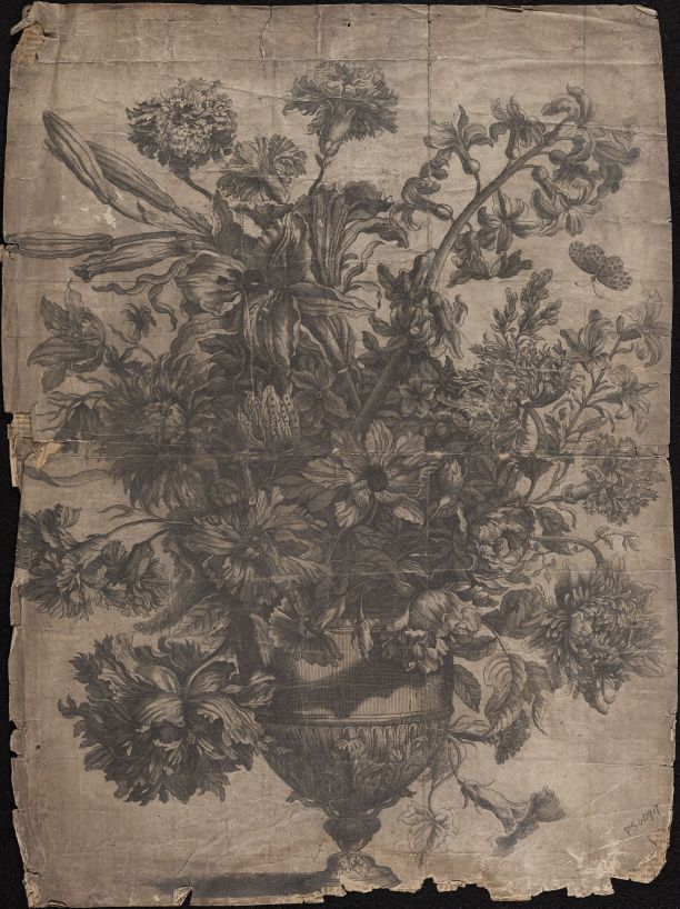 1 ontwerptekening voor een tegeltableau met bloemendecor