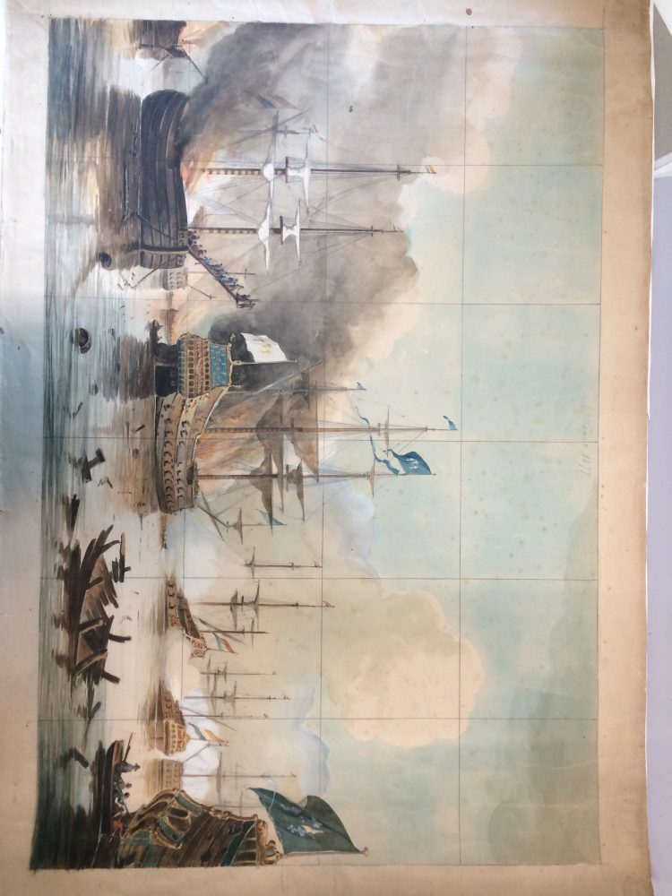 Aquarel in kleur, ontwerptekening voor tegeltableau van 6x4 tegels