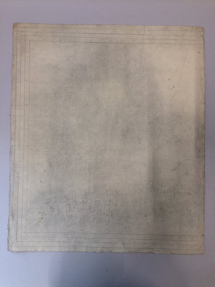 Spons met aan de linkerzijde een groep mensen aan tafel, rechts een dansende groep