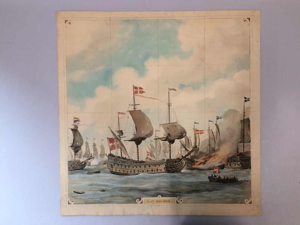 Aquarel in kleur, ontwerptekening voor tegeltableau van 4x4 tegels
