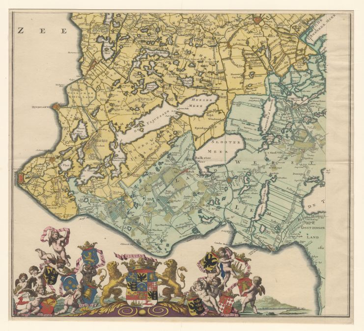 Een van zes bladen van een wandkaart, groote kaart van Frieslant van Schotanus-Vegelin