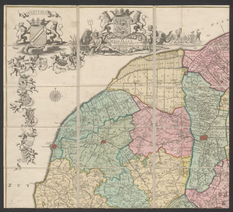 Een van vier delen van de Schotanus-Vegelin wandkaart van Frieslant