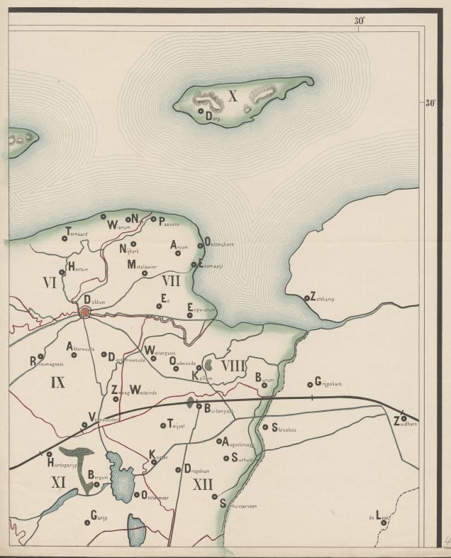 Wandkaart van Nederland voor school in vier bladen uit Jansen