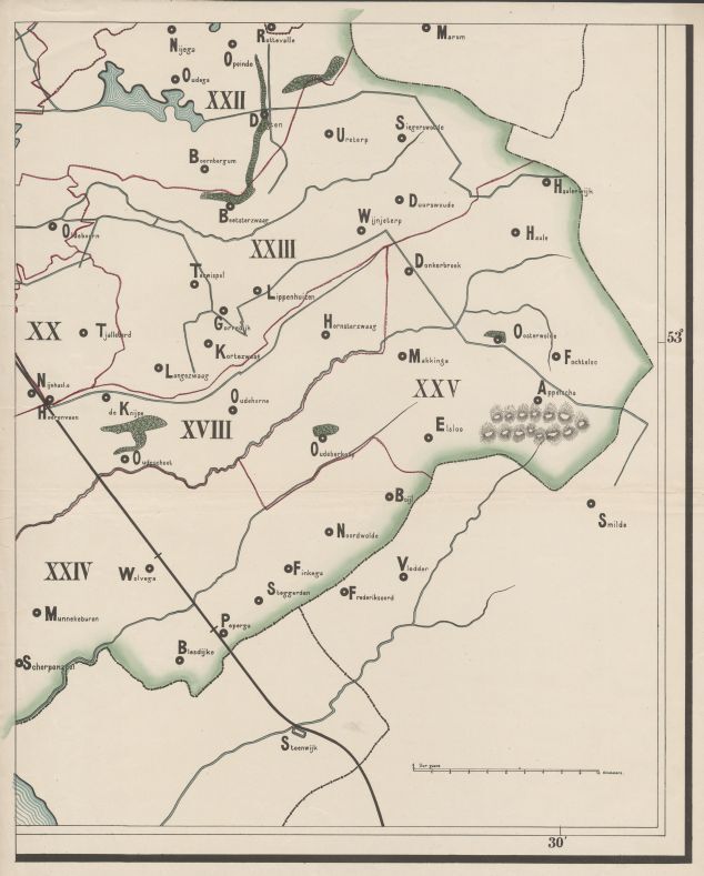 Wandkaart van Nederland voor school in vier bladen uit Jansen