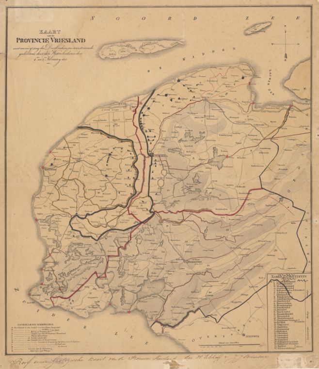 Kaart van Friesland met binnendijken, grondsoorten en terpen