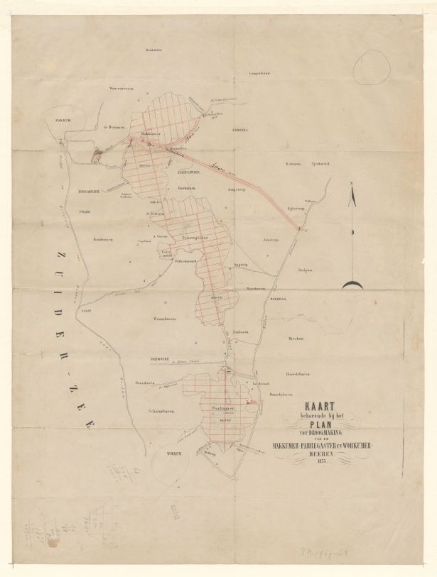 Kaart behorende bij het plan tot droogmaking van de Makkumermeer.