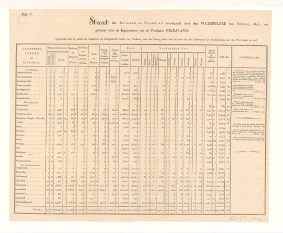 Tabel der Schaden of Nadeelen veroorzaakt door den Watervloed in February 1825