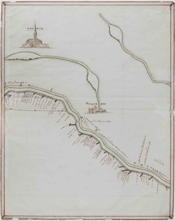 Kaart van de zeedijk bij Koudum en Molkwerum