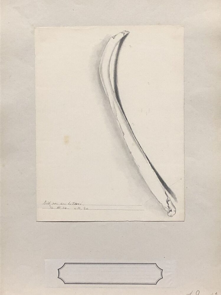 Tekening in potlood van een rib van een cetacée