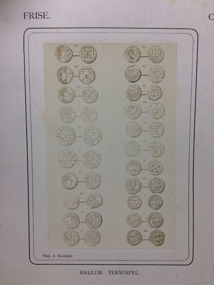 Foto van 21 Angelsaksische en Frankische oude muntjes, gevonden te Terwispel en Hallum