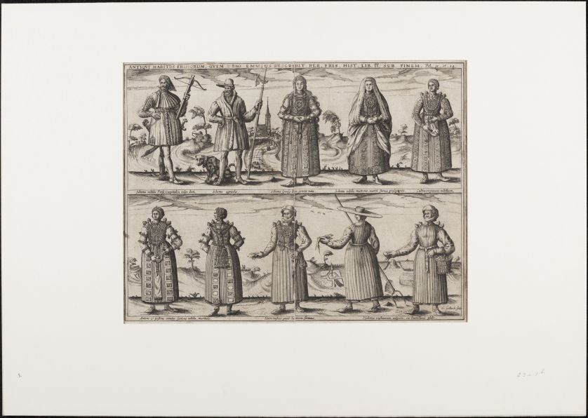 Twee mannen en acht vrouwen in oude Friese klederdracht