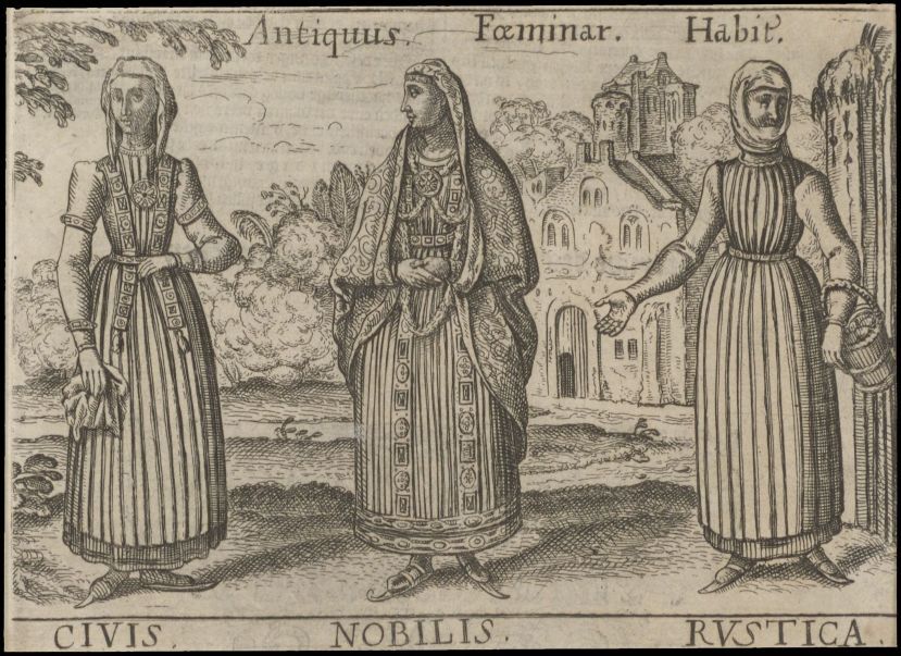 Drie dames in middeleeuws kostuum