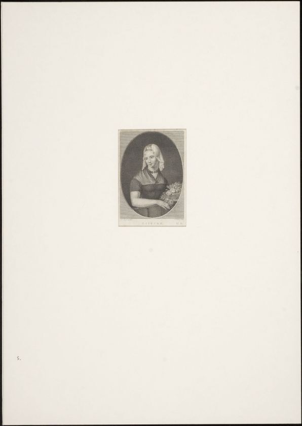 Portret van Tjitske. Een Friezin met oorijzer en kanten muts uit de Nederlandse Muzenalmanak omstreeks 1825