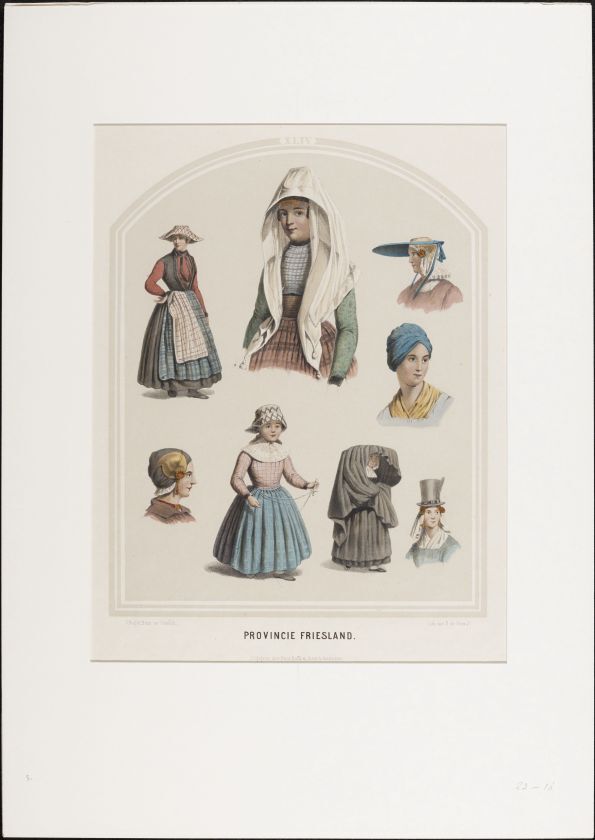 Nederlandsche Kleederdragten Nr. XLIV. Acht figuren in klederdracht