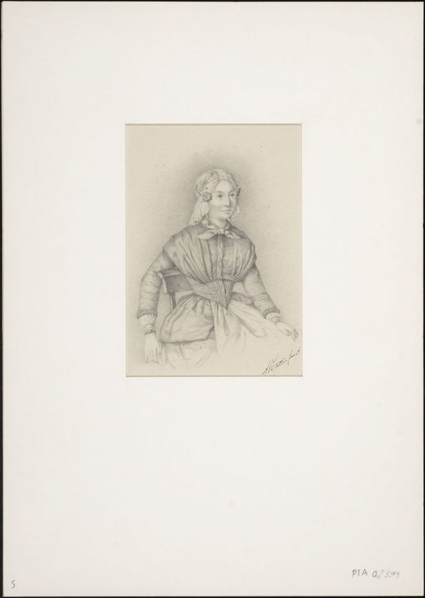 Friezin in klederdracht met oorijzer en kanten muts, omstreeks 1860