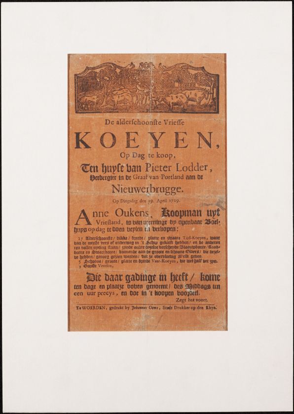 Verkoopbiljet van koeien van Anne Oukens ten huize van Pieter Lodder op 19 april 1729