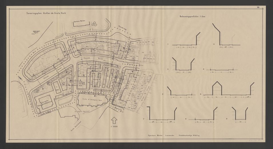 Saneringsplan met bebouwingsprofielen voor Achter de Grote Kerk te Leeuwarden